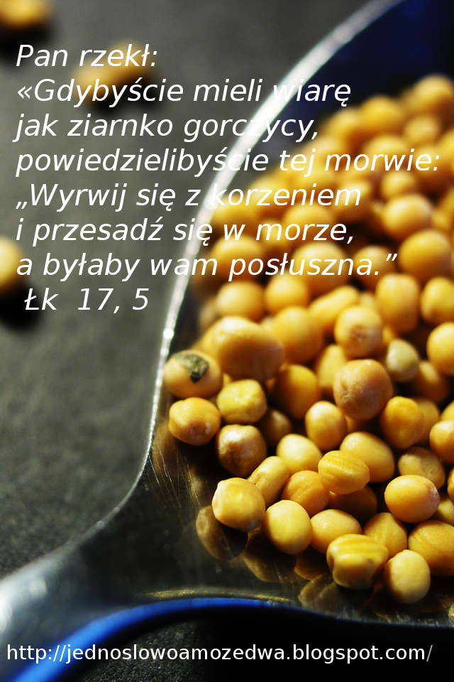 «Pan rzekł: «Gdybyście mieli wiarę jak ziarnko gorczycy, powiedzielibyście tej morwie: „Wyrwij się z korzeniem i przesadź się w morze”, a byłaby wam posłuszna.» (Łk 17, 5)